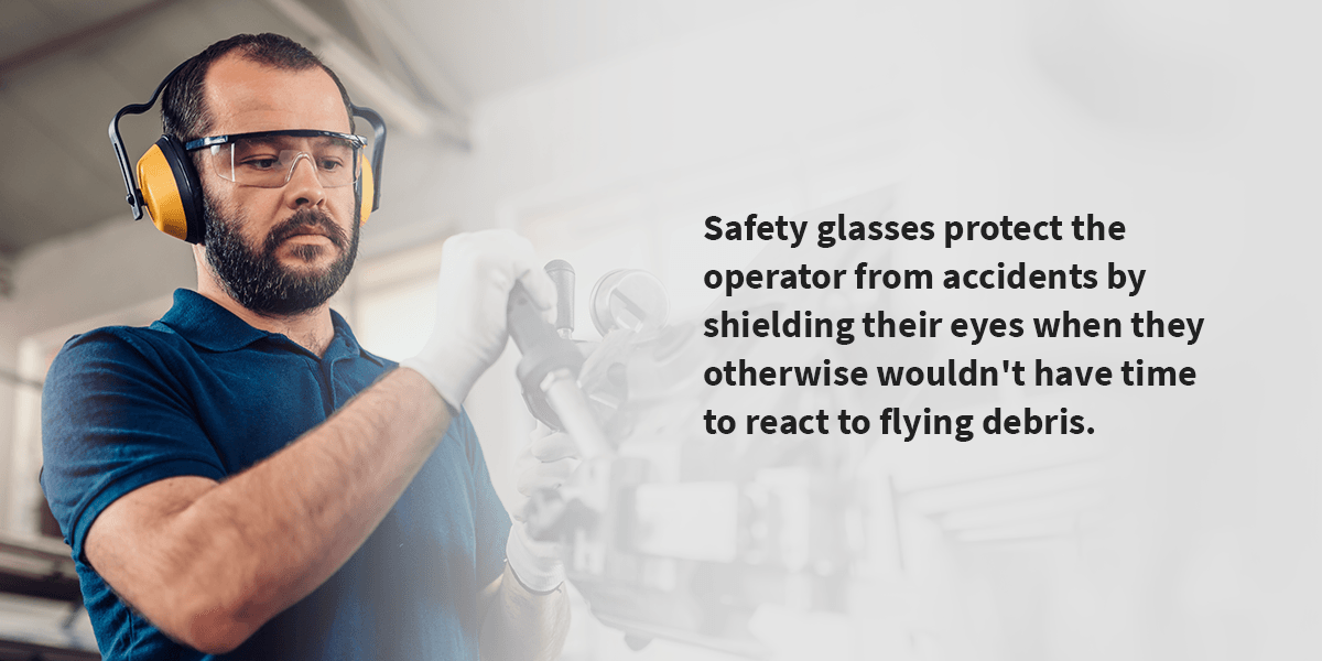 The most important tip for safe bandsaw operation is to wear safety gear. During material cutting, the blade's speed can send debris and splintered metal flying. Safety glasses protect the operator from accidents by shielding their eyes when they otherwise wouldn't have time to react to flying debris.